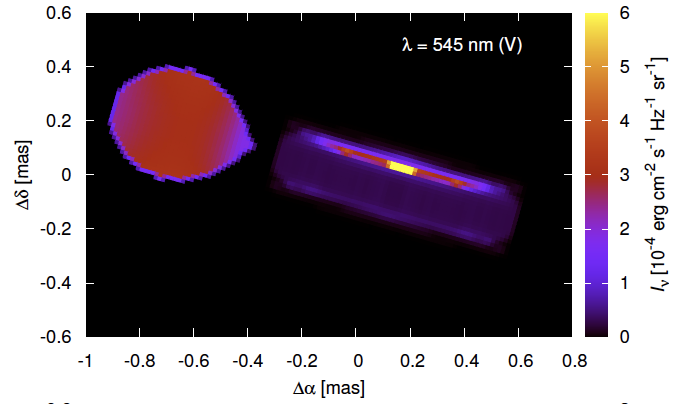 Dans ce travail (co-financé par l'ANR ESRR), nous avons mesuré divers paramètres physiques (incluant la masse, l’aplatissement et l'assombrissement gravitationnel) de l'étoile massive Sargas (theta Scorpii): une étoile géante (30 fois la taille du soleil) en rotation très rapide. Nous avons déterminé son état évolutif et montré qu'elle était probablement en train de traverser le trou de Hertzsprung, avec une petite probabilité qu’elle soit sur la boucle bleue (F5-6II). Ces résultats ont été obtenus grâce à des observations en haute résolution angulaire (VLTI/PIONIER) et spectrale (VLT/UVES) analysées avec notre modèle physique numérique CHARRON (Domiciano de Souza, et al., A&A, 2018arXiv181009903D).